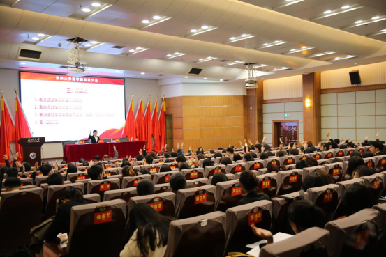 178名师生党员参加大会,列席大会的还有学院民主党派代表余向前、徐正、金海峰、张启明4位老师,大会由学院党委副书记唐华主持。