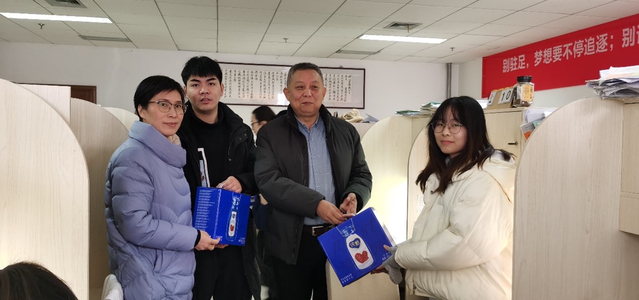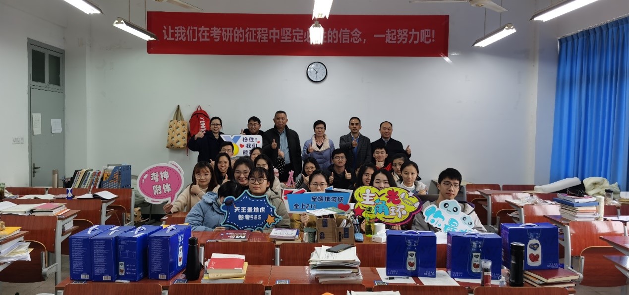老师们和部分备考学生进行了简短的交流,鼓励考研学子要有朝着目标努力奋斗的信心,要有沉着迎接各种考验和挑战的决心,要有合理作息、战胜自我的恒心,并相信同学们一定会收获属于自己的成功,同时建议同学们注意补充营养,保证体力。随后,胡院长和郑书记给每一位备考学生送上了一箱酸奶。收到学院的慰问,同学们纷纷表示定会牢记老师们的嘱托,竭尽全力认真备考,不辜负学院对自己的培养。