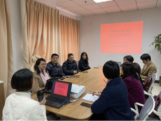 教工第二支部在北校区商学楼A308A办公室开展2020年12月主题党日活动,会议由支部书记陈文芝老师主持,支部党员及国贸系教师参加。此次会议的主要内容包括课程建设分享、魔镜号