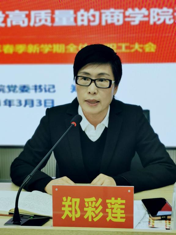 在信息楼A226仲辉商道讲堂举行2021年春季新学期教职工理论学习大会,切实提高政治站位,认真贯彻落实谢树华书记、赵敏校长在2021年春季新学期全体教职工大会上的讲话精神。全体教职工参加学习会,会议由学院党委书记郑彩莲主持。