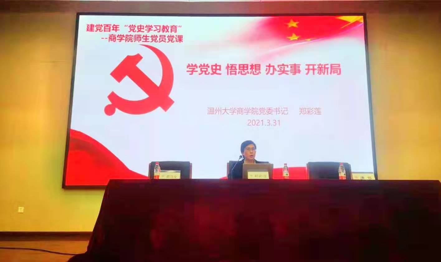大会最后,学院党委书记郑彩莲作主题为“学党史、悟思想、办实事、开新局”的专题党课,正式启动学院党史学习教育第一讲。