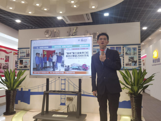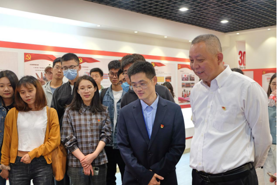 在振中公司的非公党建主题展厅里,同学们在讲解员的讲述中了解到,振中公司始创于1983年,随着第一台振动打桩机DZ30Y的试制成功,开启了企业进入桩工行业领域发展的新征程。三十年磨一创,三十年振中人的桩工情怀,造就了如今行业内响当当的“振中”品牌。1987年振中成立了全国第一个民营企业党支部,扬起了非公企业飘扬的第一面红旗,从此写下了温州非公企业党建探索实践之路的开篇一笔。
