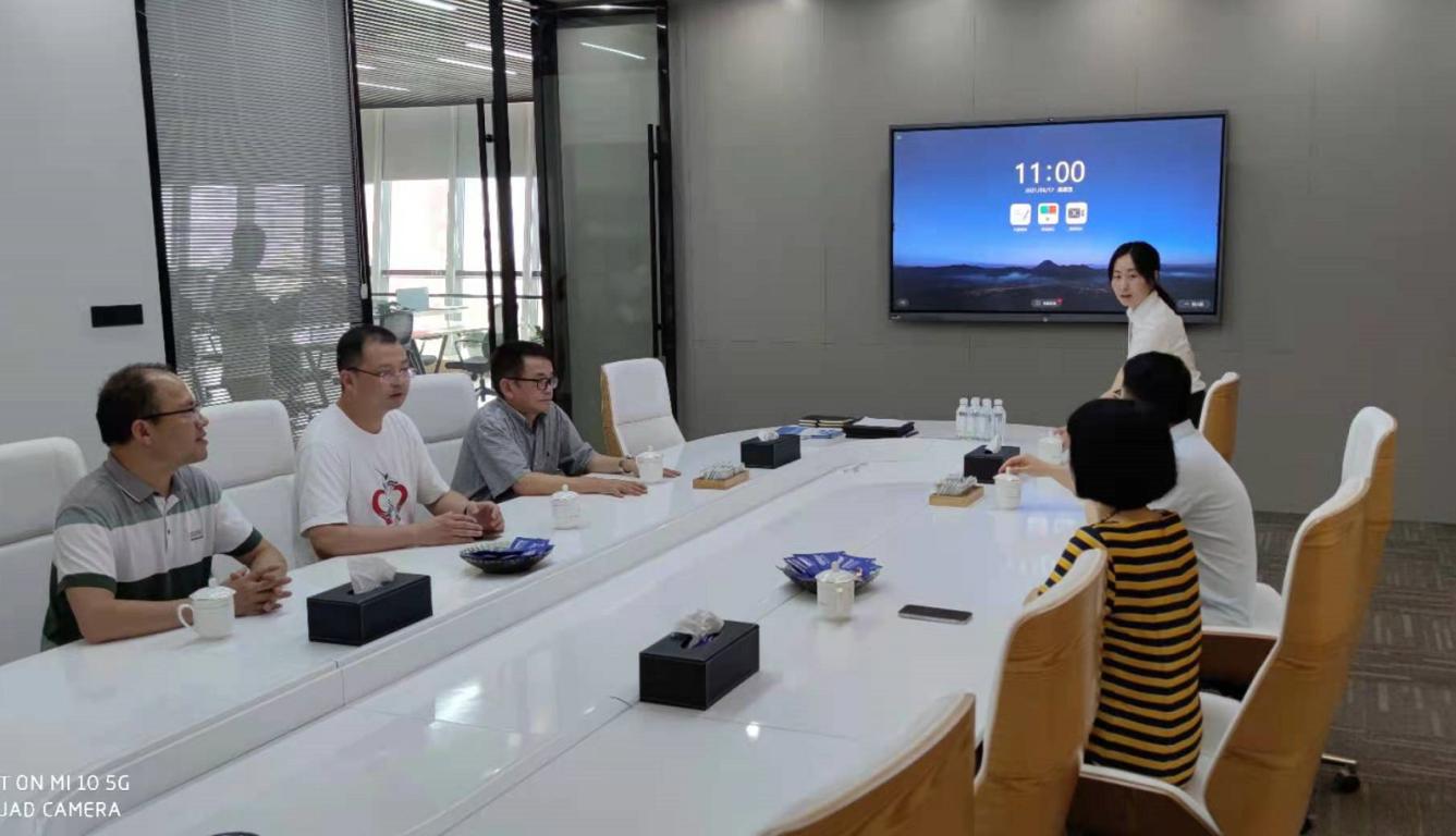 余向前副院长、来新安、陈明灼等老师在陈爱雪董事长的带领下详细参观了产业园公共服务大厅、文化墙、事记墙、人力资源产业服务共享中心、公共休闲吧和会议中心等区域,并听取了陈爱雪董事长关于园区区域规划、招商引资和最新运营进度等情况的介绍。