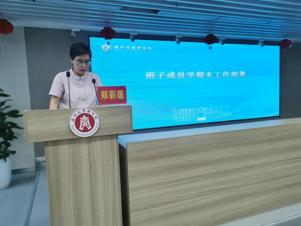 郑彩莲书记指出一是要做好学期末及假期安全工作,特别是继续做好疫情防控、学生考试安全等工作,二是要抓住假期重要窗口,做好学院建设、科研等各项工作,三是做好招生工作,四是做好下学期开学工作。