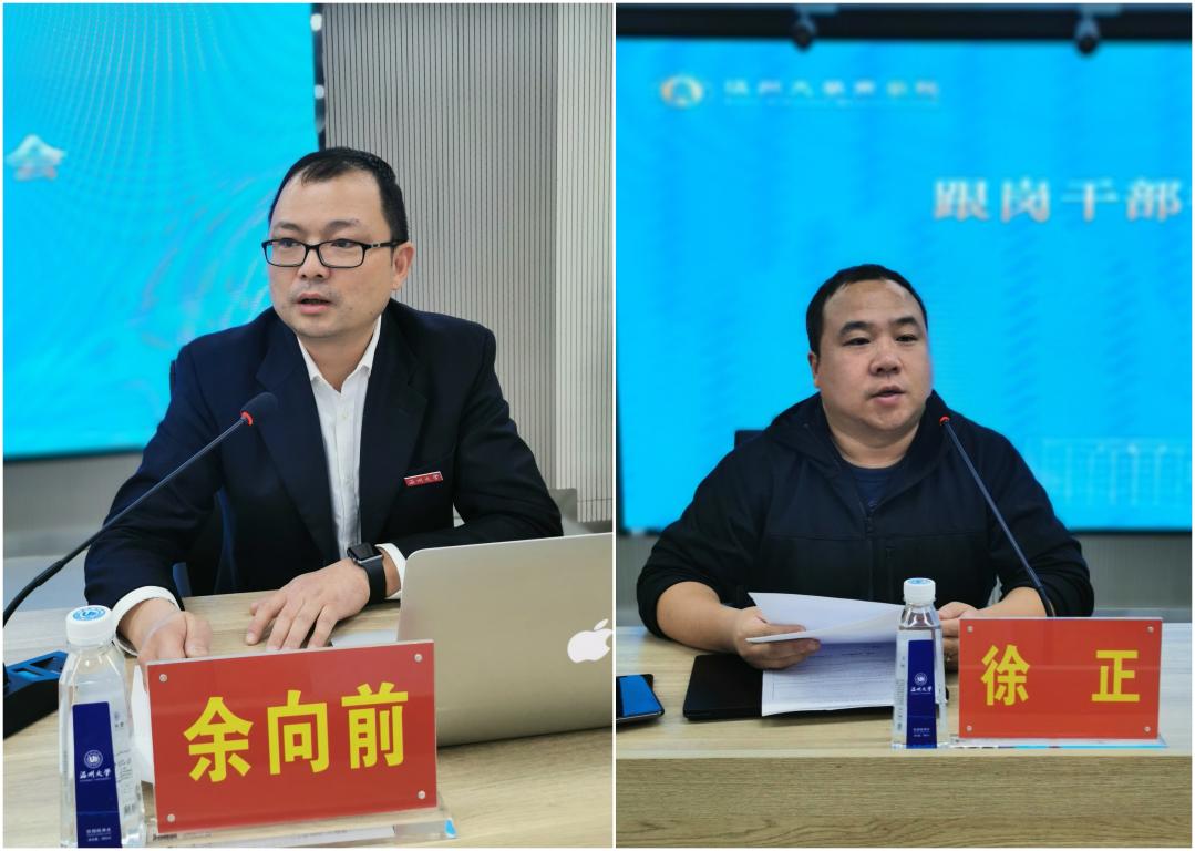 学院副院长余向前、院长助理徐正分别对自己分管工作进行了安排。郑彩莲书记还介绍了新入职的李罡、李国志、周祥军、杨艺等四位教师。