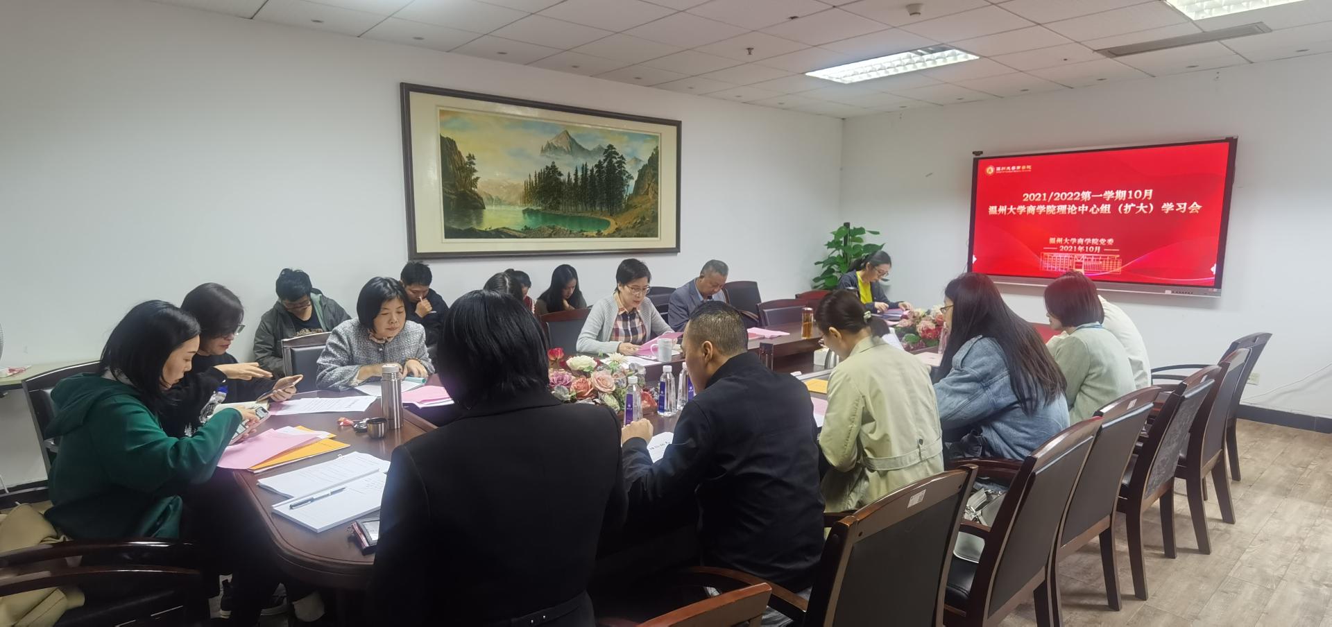 第二次中心理论组(扩大)学习会。本次会议由学院党委书记郑彩莲主持,领导、党委委员、纪委委员、支部书记以及各科室负责人参加。