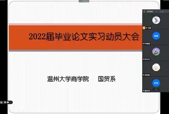 国贸系2022届毕业论文动员大会于腾讯会议顺利召开。本次动员大会由国贸系马媛老师主持,18国贸和20国贸专升本1、2班的学生参加了本次大会。