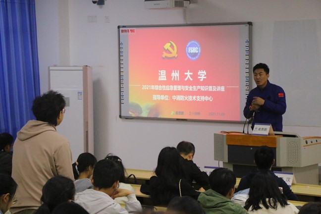 组织召开寝室长大会,特邀温州市中消防火技术支持中心俞贵鹏教官,在北校区3号楼301阶梯教室为魔镜号
