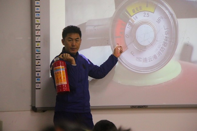 随后,俞贵鹏教官结合现实案例说法,为同学们详细介绍了火灾的危害、常见火灾的起因、遇到火灾时怎么办以及单位消防安全应具备的四个能力。讲座同时,俞教官还积极与现场同学互动,邀请同学上台配合共同为大家操作示范了灭火器和防烟面具的正确使用方法。最后,俞教官希望同学们能够防微杜渐,在日常生活中提高安全意识,排除火灾隐患,在遇到火灾时能够冷静处理,采用正确的方法灭火和逃生。