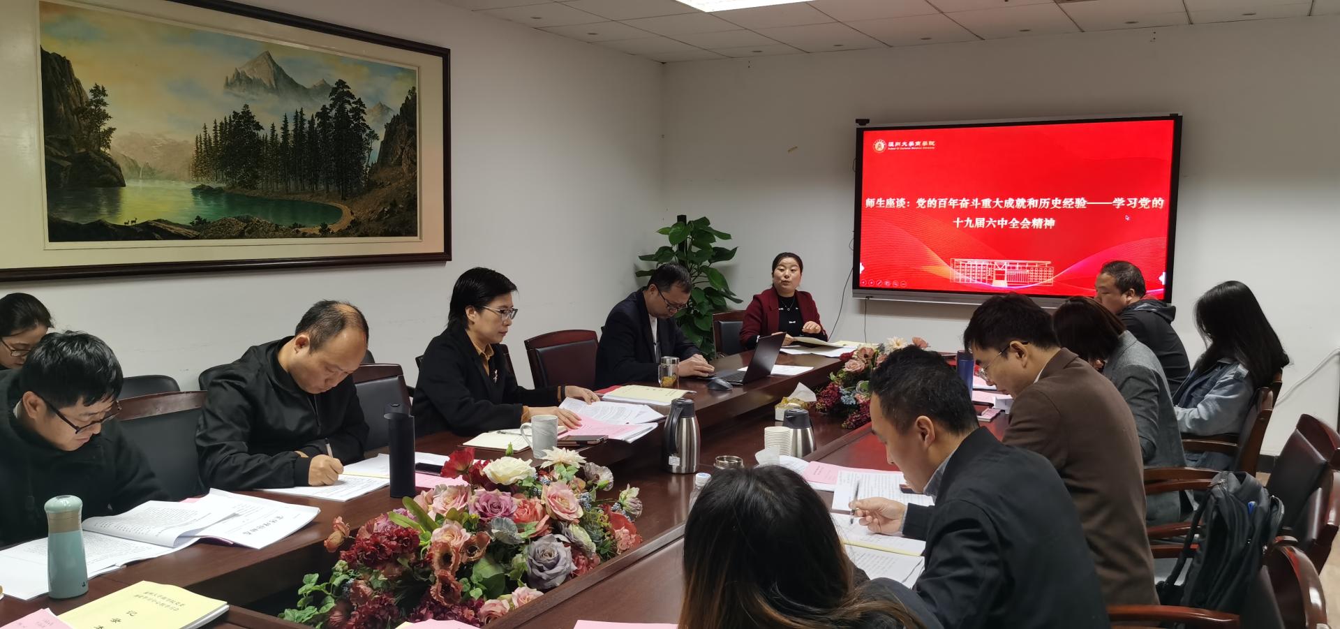 会议最后,郑彩莲书记对本次中心理论组学习会进行总结讲话。她引用习近平总书记的金句,“中国共产党人依靠学习走到今天,也必然要依靠学习走向未来”,强调学习的重要性,对三位老师的理论领学和对每一位老师发表心得体会表示肯定。同时,郑书记指出,今天主要聚焦学习党的十九届六中全会精神,这是我们党在百年华诞之际、在全面建成小康社会实现第一个百年奋斗目标、开启全面建设社会主义现代化国家新征程的重大历史节点召开的一次极为重要的会议,对于推动我们全党进一步统一思想、统一意志、统一行动,团结带领各族人民夺取新时代中国特色社会主义的新的伟大胜利具有重大的现实意义和历史意义。她强调《决议》是一篇承前启后、继往开来的史诗般的文献,希望大家会后再次细读、学习《决议》全文,并提出了四点要求:一是各个支部要认真学习、贯彻落实《决议》提出来的为党育人的具体要求,组织支部成员学习,开展主题党日活动;二是共青团要带领广大团员、青年共同学习,各个支部抓好学习的同时还要带领全院的共青团学好、弄懂基本的内容,掌握重要的观点,理解工作的要求,并要求基层团支部以团日活动的形式展开学习;三是要提高宣传引领实效,依托新媒体平台进行宣传,尤其是要用好微信公众号、直播间;四是深化党史学习教育,着力将党史学习教育引向深入,在巩固前期工作成效的基础上,以《决议》为大纲,突出主题主线来理解重大历史结论,让学生在真正学习的过程中懂得哲理。