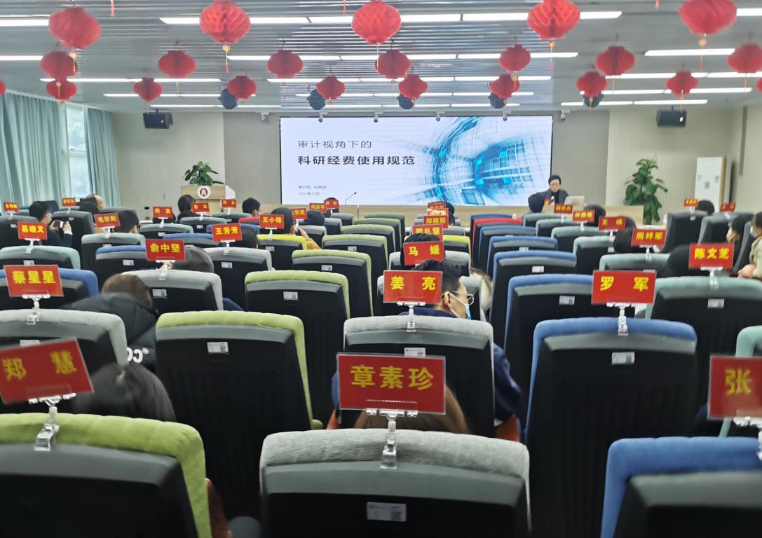 审计处处长阮丽芬来院作题为《审计视角下的科研经费使用规范》的报告,全体教职工参加学习。