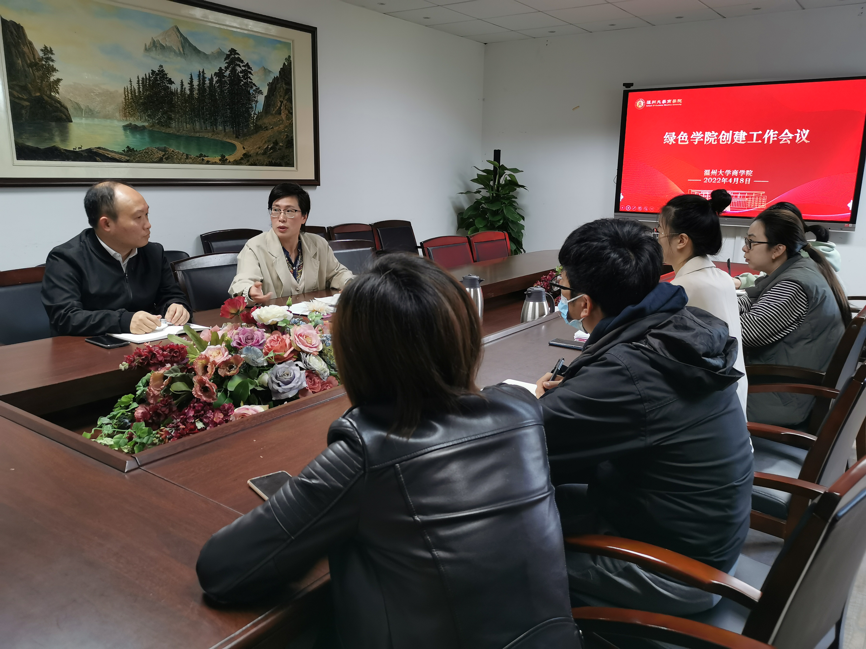 举行绿色学院创建工作会议,会议由学院党委书记郑彩莲主持,学院党委副书记唐华、办公室主任张素琴、教学科科长徐姝、学生科科长周洁文及相关工作人员参加会议。