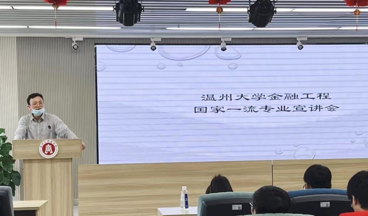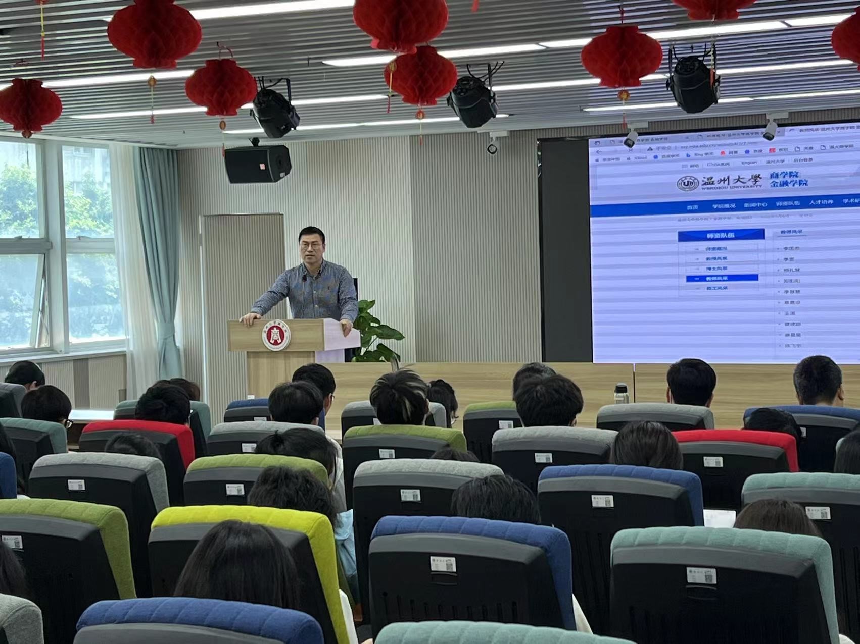 胡振华院长作为开场,为同学们讲述了金融工程专业的发展历史、各项优势以及光明前景。他亲切地向同学们介绍了温州的金融发展历程,并且向同学们细数了金融工程专业在温州的区域优势,并且简单介绍了金融工程专业的老师的教学能力以及科研能力强。殷切地希望同学们可以认真思考未来的发展方向,发现金融工程专业能够为同学们带去的宝贵知识和技能;同时,也期盼同学们能够携手共同推动金融工程专业欣欣向荣!
