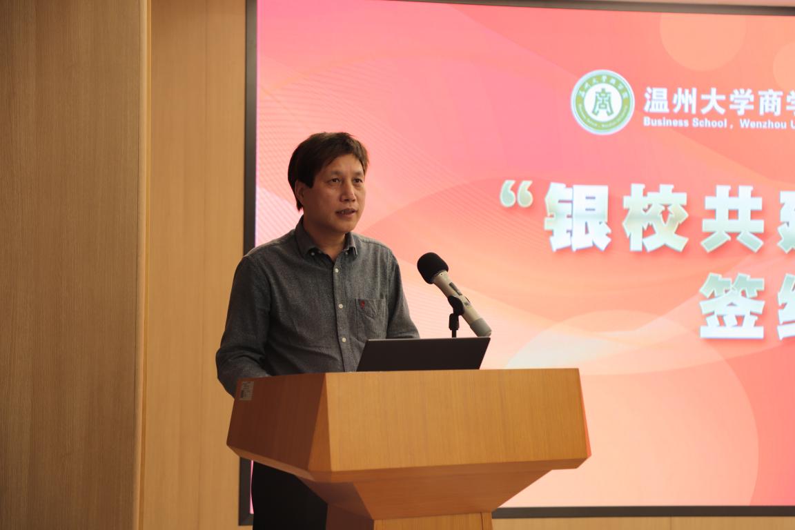 党委已先后与五十余家金融单位建立了党建共建合作关系,并将共建行动落实到课程设置、专业建设、创业指导、实习实训等各环节中,共建成果日益丰硕,党建共建红利逐步释放。他表示此次与泰隆银行温州分行的深度共建合作将为“银校共建”党建项目增添浓墨重彩的一笔。为推进“银校共建”党建品牌项目走深、走实,与泰隆银行温州分行切实达到资源共享、优势互补、共建提升的预期目标,杨书记提出了四点希望和要求:深化理论学习,交流党建工作经验,实现共建共享;学习实践融合,拓展专业实践载体,助力人才培养;校企精准对接,解决就业现实问题,助力精准就业;强化责任担当,坚持科研服务地方,助推经济发展。