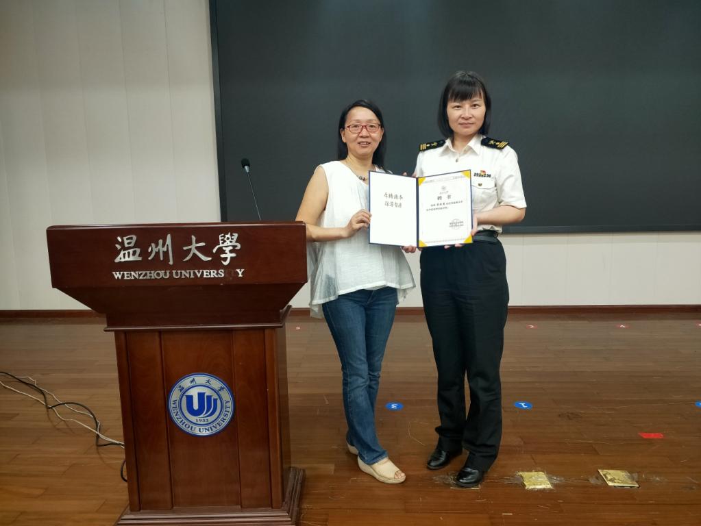 2022年6月17日下午, 21级国贸及专升本学生在信息楼报告厅聆听了温州海关董晓慧和温州商务局赖艺文两位专家带来的专题讲座,分别是《外贸中的国门生物安全》、《温州跨境电商综试区发展概况及建设思路》。讲座开始前,指导教师叶春霞老师代表魔镜号