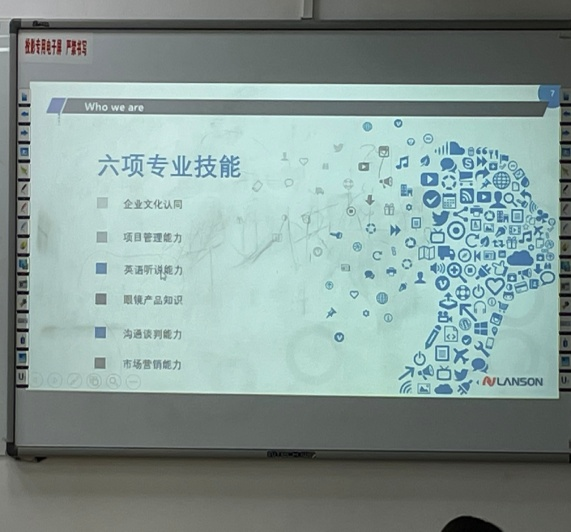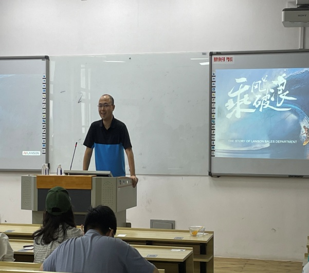 第二专题是外贸业务员的成长技能与发展方向。张健总监以自己的工作为例,详细地介绍了一个业务员的日常主要工作内容,业务范围,然后也向我们介绍了未来外贸业务发展趋势,同时也对公司外贸人才提出发展目标和能力要求,这也是对我们国贸专业学生的要求,给我们树立了明确的进步目标。