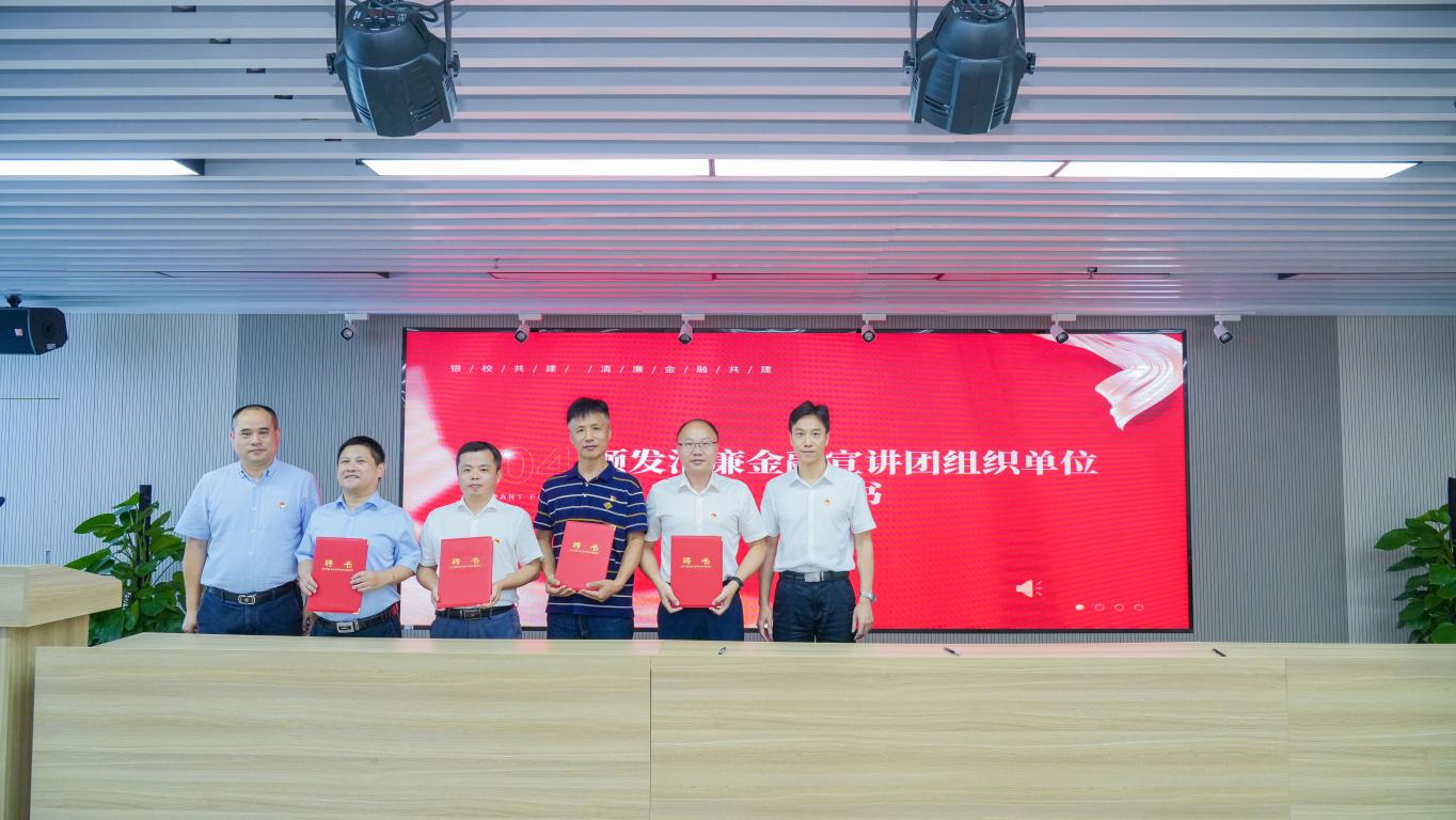 纪委副书记、纪检监察室主任、巡察办主任杨立淮和温州银保监局党委书记、局长朱燕军为清廉金融宣讲团组织单位颁发聘书。