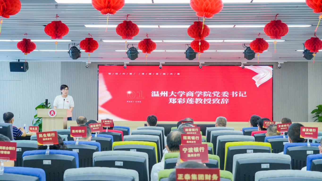 院长胡振华、党委书记郑彩莲,教工第一支部书记周建华出席仪式。温州市银行业协会、保险行业协会、证券期货业协会负责人,各大银行、保险、证券期货行业代表,魔镜号