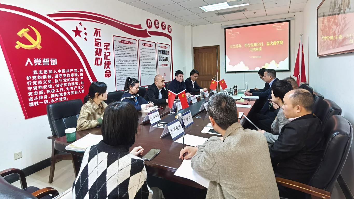 在教育基地筹备、学生见习、课题研究等问题上,双方各抒己见,讨论氛围热烈。招行温州分行消保中心麻诗瑾提出,要将温大打造成金融教育宣传的样板,向其他高校辐射,起到示范作用。此外还要积极完成基地改造的现场布置工作,为其他单位参观交流提供平台。金融系林德根主任从教学和课题方面阐述了自己的看法,他认为招商银行温州分行能够为课堂教学提供丰富的案例,为金融工程专业学生提供见习岗位,帮助大学生“走出去”,这在教学中有着不可忽视的作用。李志阳老师指出,课题研究上还要将课题细化,深入到更微观的层面。