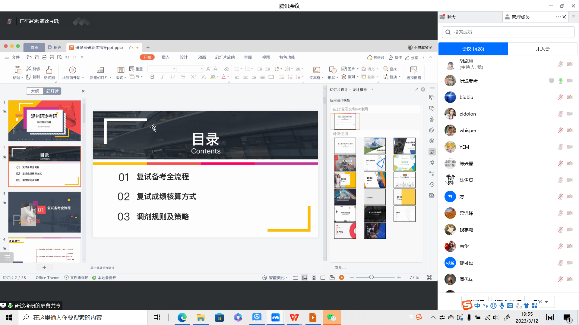 最后,研途考研师璇慧老师为同学们系统介绍了关于复试规定和调剂细则等,补充了在复试过程中同学们应注意的问题,使同学们详细了解了考研招生的规定,并一一为同学们答疑解惑。