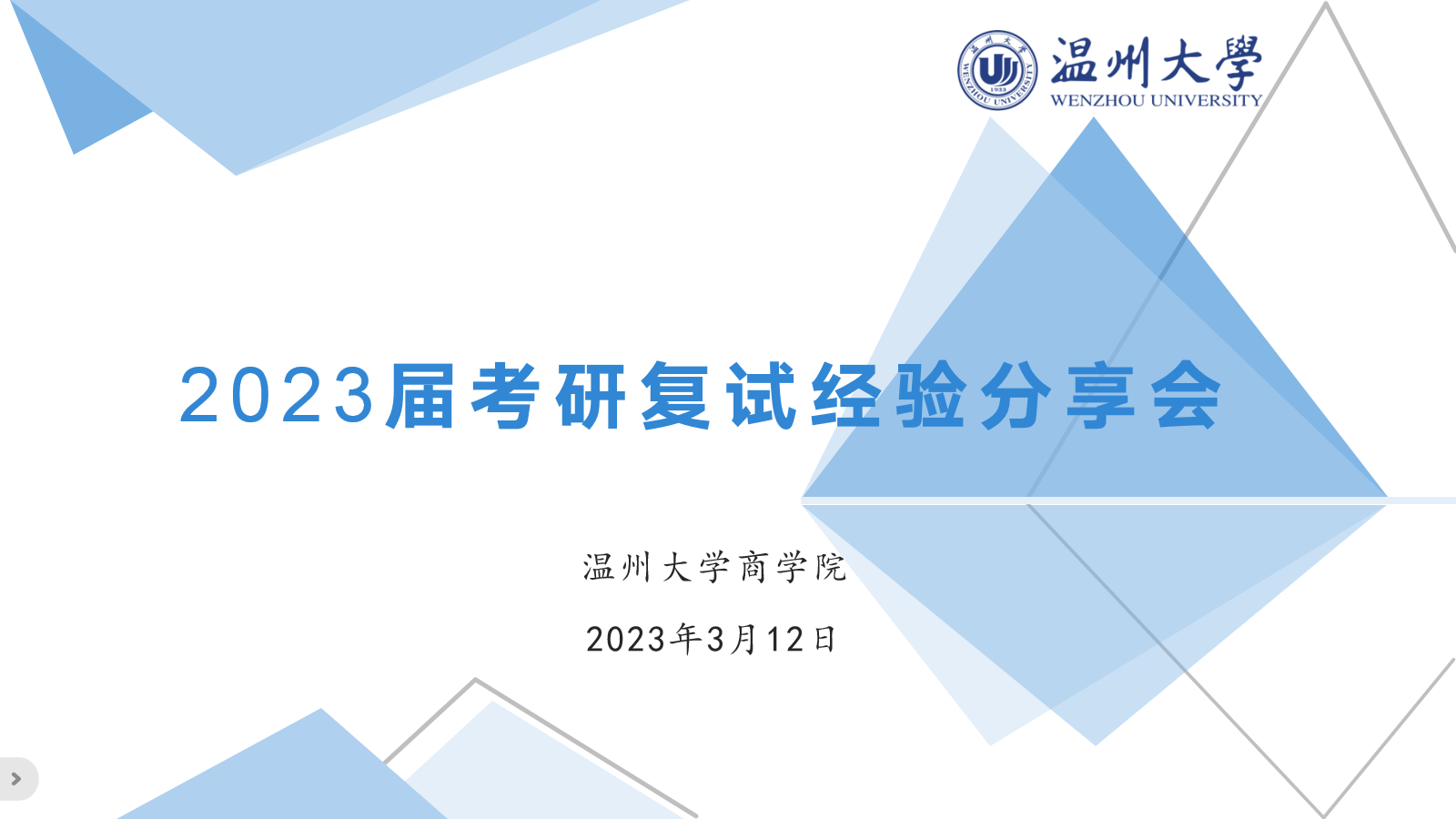 以腾讯会议的方式顺利召开2023届考研复试指导暨经验分享会。本次会议邀请了学院党委副书记唐华、5名研究生学长学姐以及研途考研师璇慧老师进行复试经验分享与交流,2023届考研学子线上远程参会,会议由学生科胡施施老师主持。
