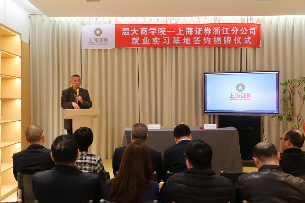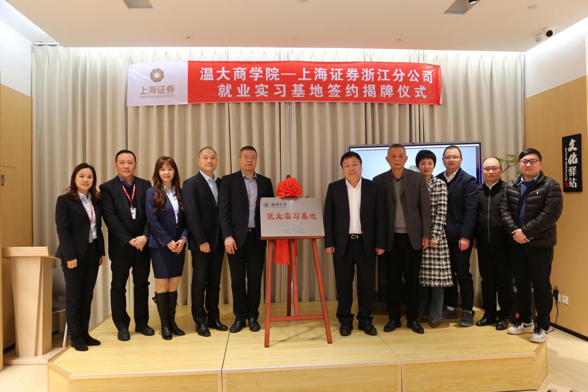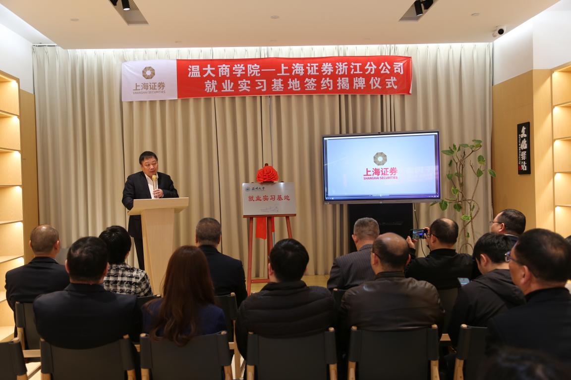 双方在投教基地举行了就业实习基地签约揭牌仪式。上海证券浙江分公司总经理金洛川介绍,上海证券浙江分公司成立于2012年6月,是上海证券在全国范围内组建的首家分公司,同时也是国务院批复设立温州“金改”试验区后在温州区域落户的第一家分公司。下辖浙江辖区22家证券营业部。浙江分公司秉承“开放、包容、规范、协同”的核心理念,覆盖浙江,服务全省,以最佳产品和服务为指引,加大互联网金融实践,不断提升客户体验,为广大投资者提供证券经纪、财富管理、投资咨询等全方位的综合金融服务,努力成为“特色鲜明、区域领先、品牌知名”的优质券商。金洛川总经理希望通过本次就业实习基地的建设,加强双方人才合作,大力开源拓岗。为毕业生就业拓宽新空间,实现人才培养和社会需求的有机结合。
