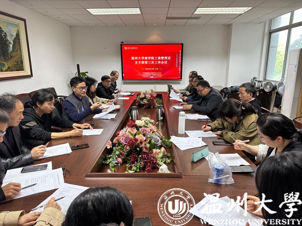 工商系在商学楼A222会议室举行本学期第三次教科研工作会议,工商系全体教师参加,会议由系主任陈敏老师主持。