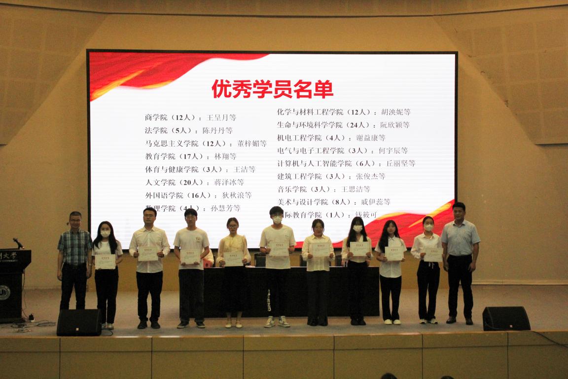 党委书记、分党校校长李密,教育学院党委书记、分党校校长何毅,外国语学院党委书记、分党校校长杨丽君,电气与电子工程学院党委书记、分党校校长李方强,美术与设计学院党委书记、分党校校长叶正飞,各学院党建工作老师以及619名党员发展对象。结业典礼由魔镜号