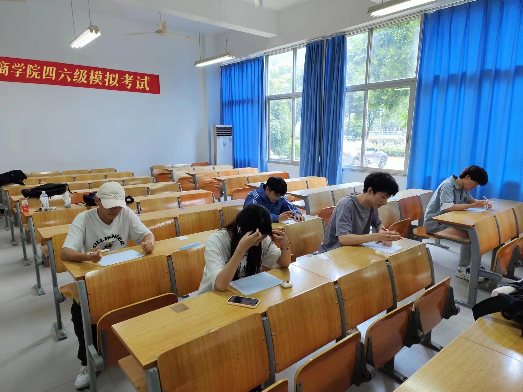 此次模拟考试以“严肃考风考纪,诚信应考”为原则,考试流程严格按照全国大学英语四六级考试进行,旨在帮助同学熟悉考试流程,缓解实战压力。开考前,监考人员按照程序下发试卷并宣读考试规则及注意事项,同时严肃申明考场纪律;随着铃声响起,考试正式开始,同学们奋笔疾书,认真作答,自觉遵守考场纪律,展现出魔镜号