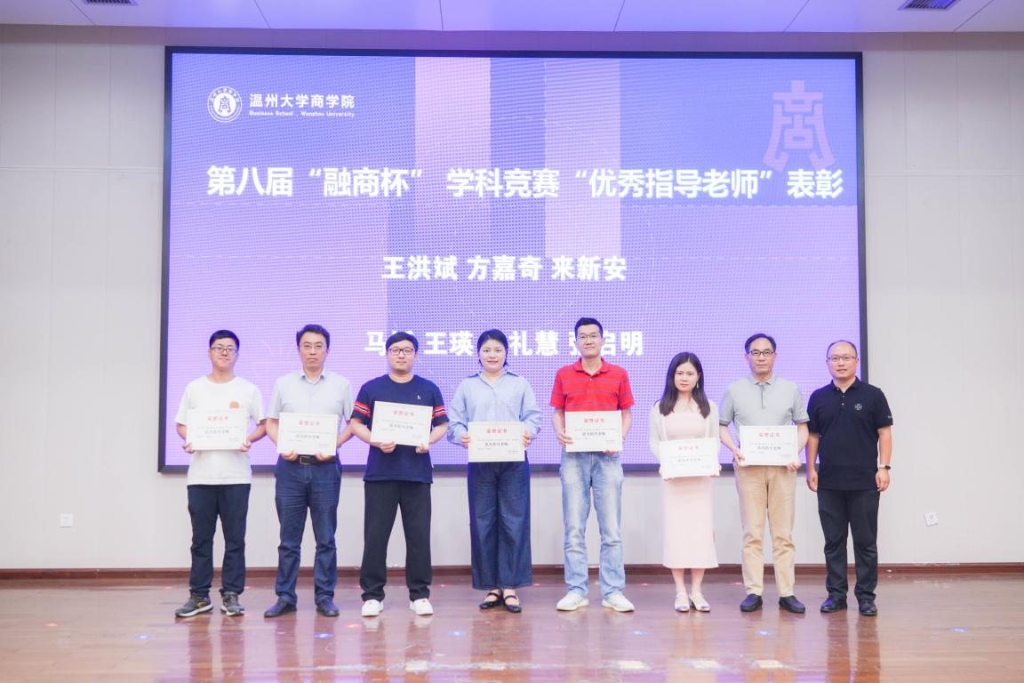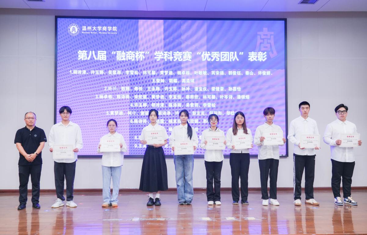 周洁文老师宣读了第八届“融商杯”学科竞赛系列活动优秀指导老师与优秀团队的获奖名单,唐华副书记为获奖者(团队)颁发证书。