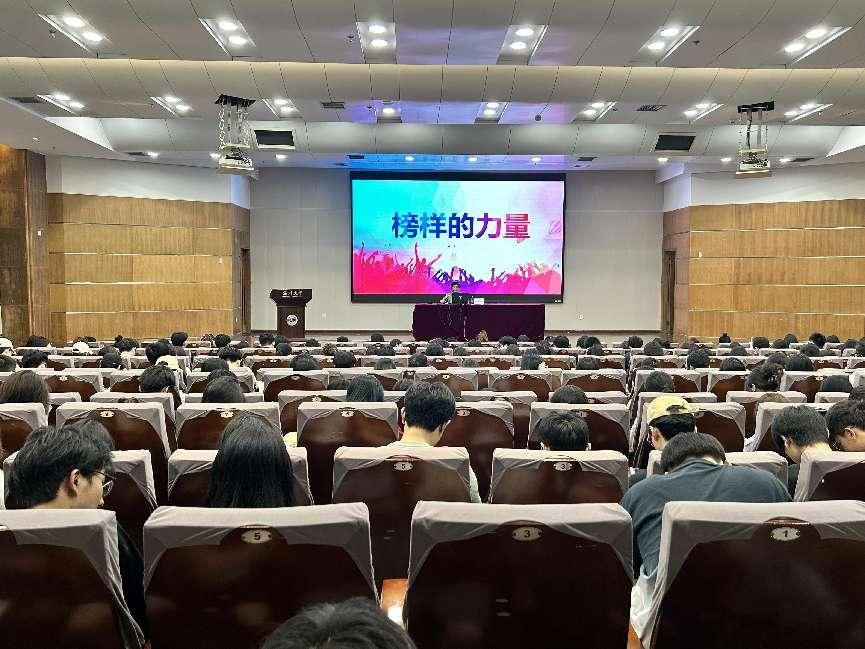 党委书记李密从名人成长和身边榜样两个维度向商院学子生动、亲切地传递了榜样力量。李书记以国务院总理李强的晋升履历和阿里巴巴集团主要创始人马云的创业经历为例,向同学们介绍新时代典型的浙江杰出人物代表,指引大家走向接近梦想的地方,敢做时代尖兵。