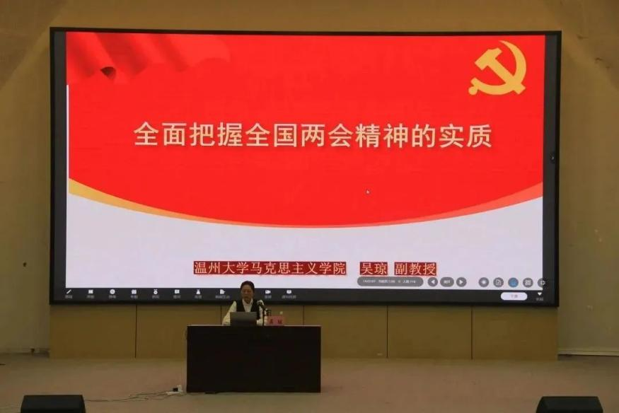 政府工作报告提出“扎实推进中国式现代化”,吴琼老师从“现代化”释义讲起,提出“现代化≠西方化”,中国式现代化是中国共产党领导的社会主义现代化,既有各国现代化的共同特征,更有基于自己国情的中国特色。她就中国式现代化的本质特征和党对社会主义现代化建设进行的艰辛探索开展具体介绍与讲解。