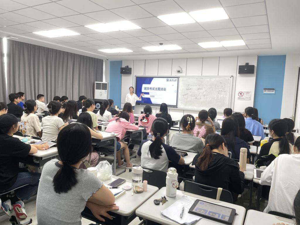 本科各班积极召开以“诚信考试”为主题的班会,通过宣讲、看相关视频等方式强化同学们对诚信考试重要性的认识。此次班会旨在告诫同学们在接下来的考试中,不要抱有侥幸心理,在期末考试来临之际能明确学习目标,端正考试态度,并衷心祝愿所有同学在公平、公正的环境中取得优异的成绩。随后,各班学生纷纷在《学生诚信考试承诺书》上签名,表示一定以“诚信考试为荣,违法作弊为耻”,树道德之新风,立诚信之根本,带头营造良好的考试氛围。