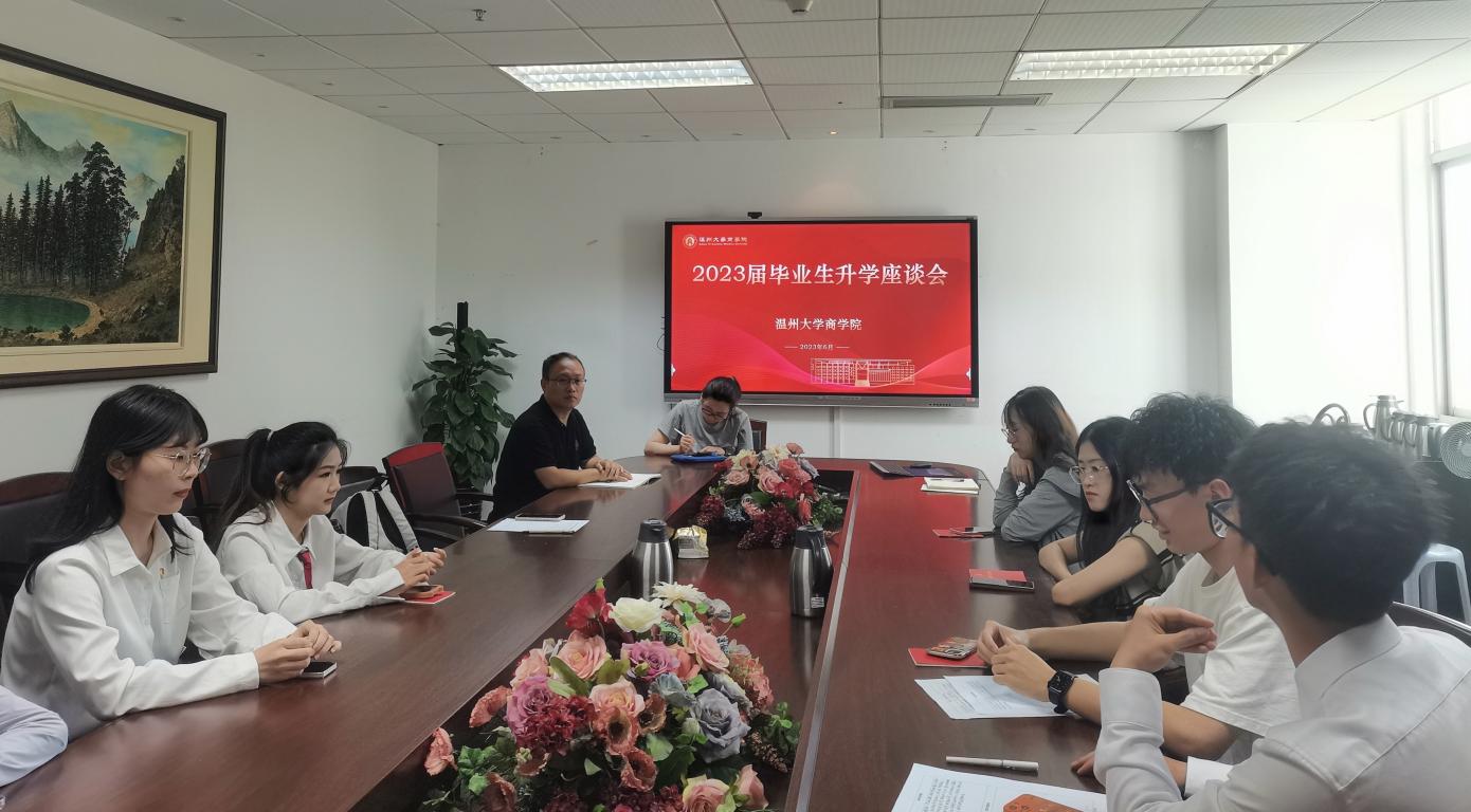在信息楼A222会议室召开2023届考研升学学生代表座谈会。学院党委副书记唐华、学生科科长周洁文、本科生毕业班辅导员胡施施和部分成功考研升学的毕业生代表加了此次座谈会。