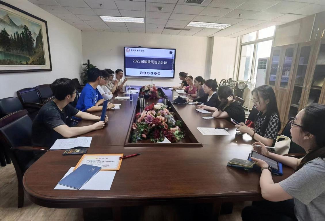 于6月20日下午17:00在信息楼A222会议室召开了2023届毕业班班长会议。学院学生科科长周洁文、辅导员张元祝、张春洋和胡施施等出席会议。