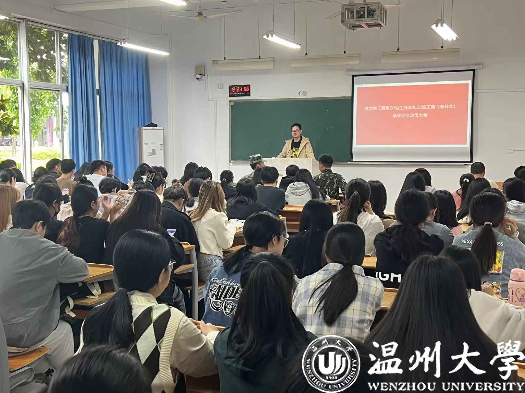 工商管理系举行2024届本科生毕业论文开题和实习工作动员大会,会议由系主任陈敏老师主持,22工商(专升本)、20工商本以及工商系全体教师出席了本次动员大会。