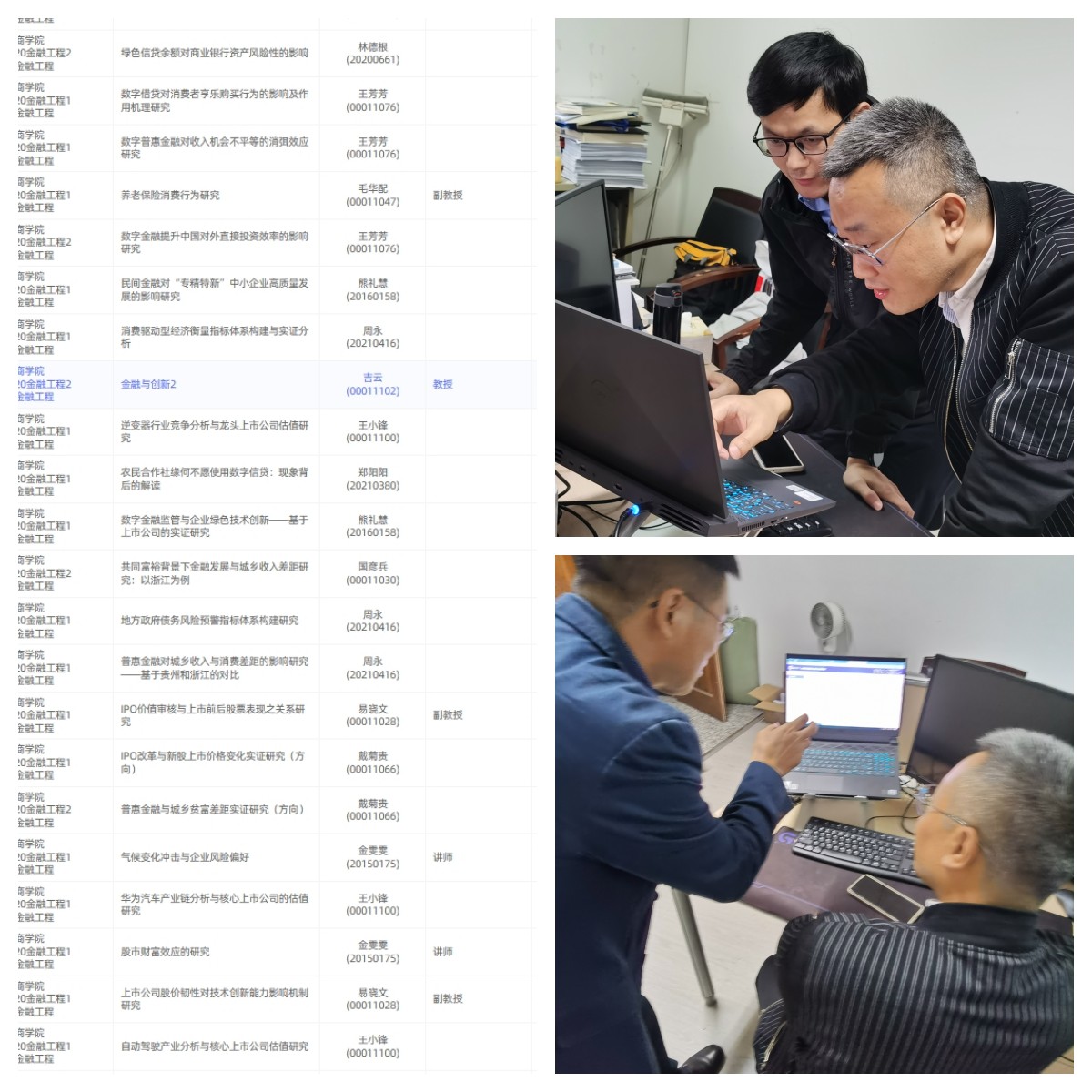 2023年11月28日下午16点,金融工程专业负责人胡振华(线上指导)、金融工程系主任林德根、系副主任李永盛、金融工程系毛华配副教授组成了选题审核小组,在魔镜号