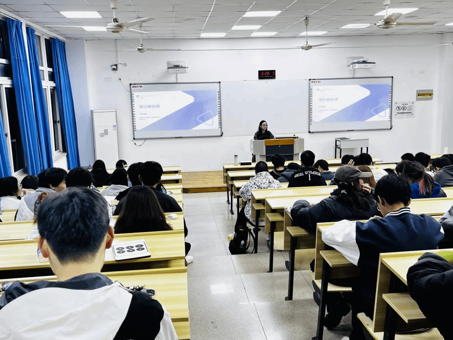 李文静经理结合实际工作,通过让学生零距离的接触到审计工作底稿,使学生真正了解到审计工作的日常。李文静经理首先介绍了审计盘点。存货监盘分为监和盘两部分,监是查看账本记录,盘是实地盘点。是审计人员现场监督被审计单位各种实物资产及现金、有价证券等的盘点,并进行适当的抽查。实施存货实物监盘的目的是为了确定被审计企业存货计量和存货记录程序的运作是否有效。随后,李文静经理着重强调了重要性水平。她指出,在审计过程中,审计人员可以应用不同的方法和计算基础,对同一被审计单位的会计报表确定出不同的重要性水平,但审计人员必须作出选择,将其中一个较低者作为此次审计报表层次的重要性水平,以便该重要性水平能够涵盖利用其他方法和其他条件下确认的重要事项。