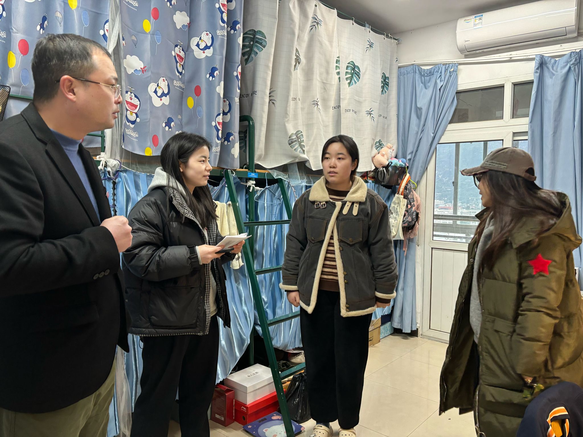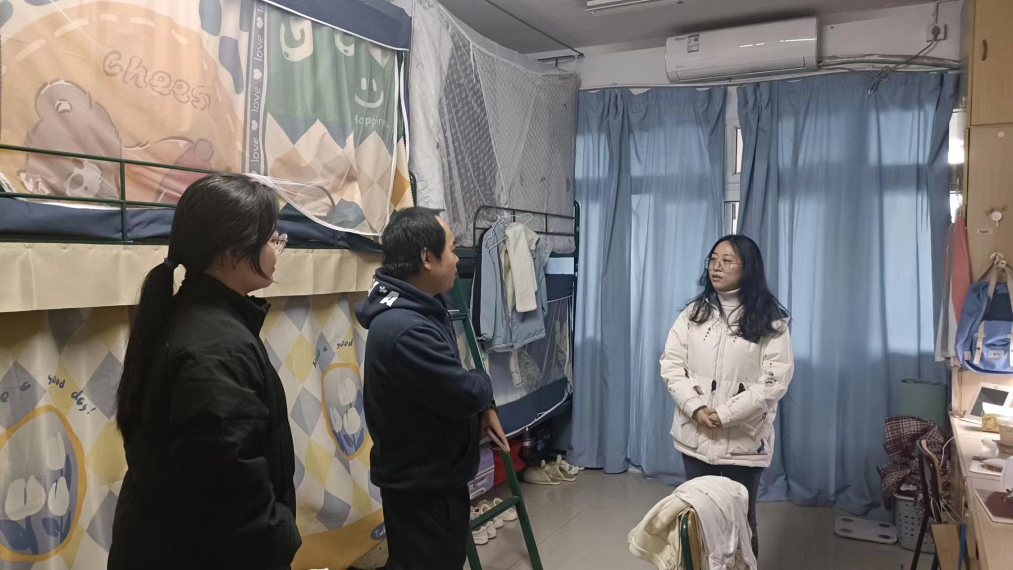 胡振华院长、李密书记牵头开展学生公寓安全检查工作行动。全体院领导、班主任、辅导员参加。
