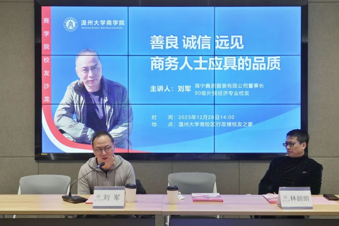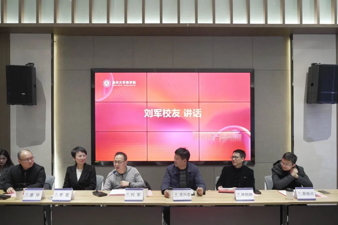 思维上的优势,希望同学们重视思维的发展、眼界的开拓。随后,刘军校友分享了三点至关重要的“生意经”。第一是善良,心宽一寸,受益三分;第二是诚信,人而无信,不知其可也;第三是远见,见微以知萌,见端以知末。