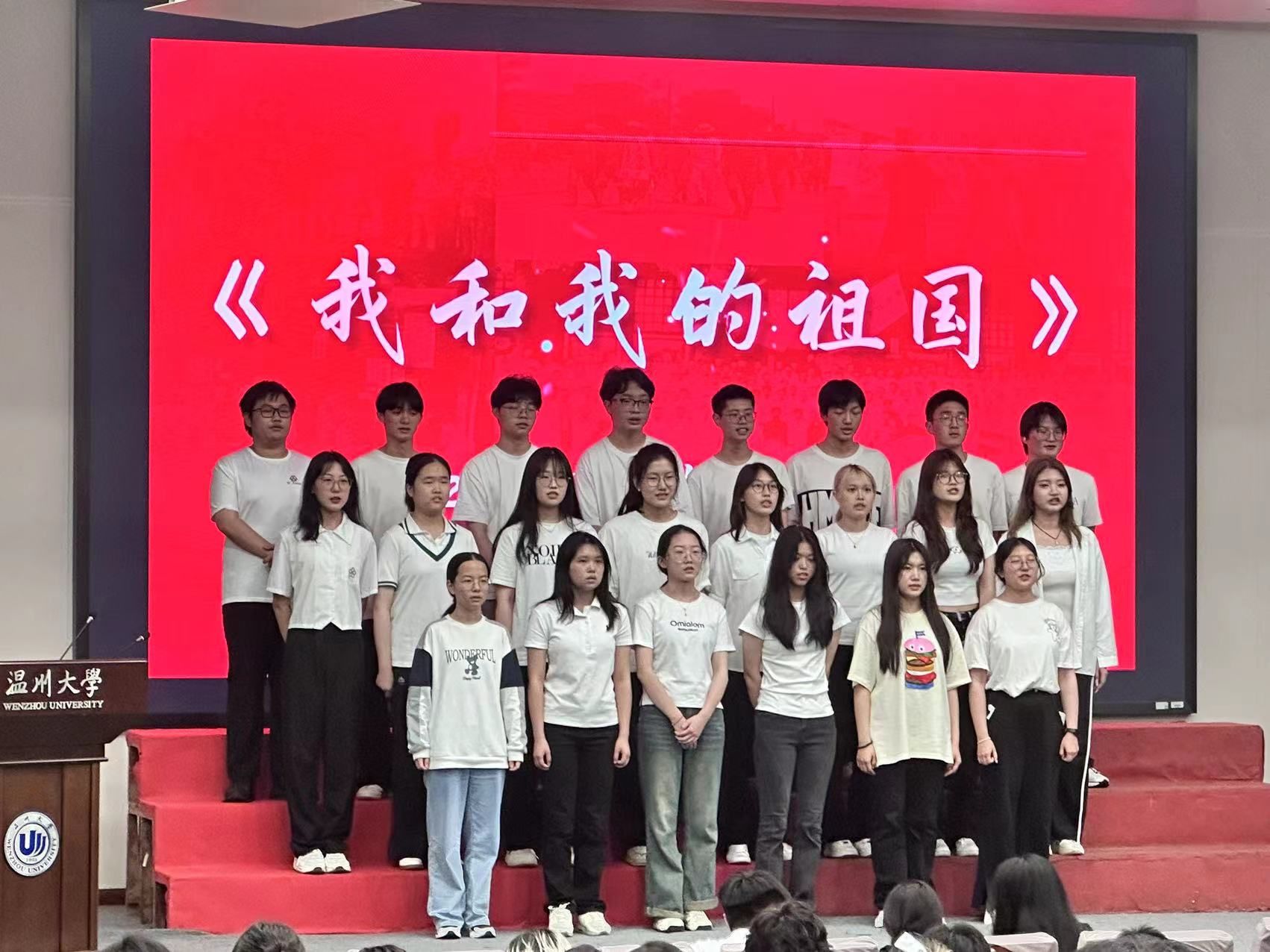 在闪亮的舞台之上,一支支队伍昂首挺胸,一位位学子们引吭高歌,以饱满的精神面貌唱响,展现商院青年朝气蓬勃的青春风采,《如愿》、《我和我的祖国》、《我的中国心》……一首首经典歌曲唱出了国家的繁荣富强,唱出了新时代青年学生对祖国的无限深情,嘹亮的歌声、磅礴的气势,赢得了台下阵阵掌声。