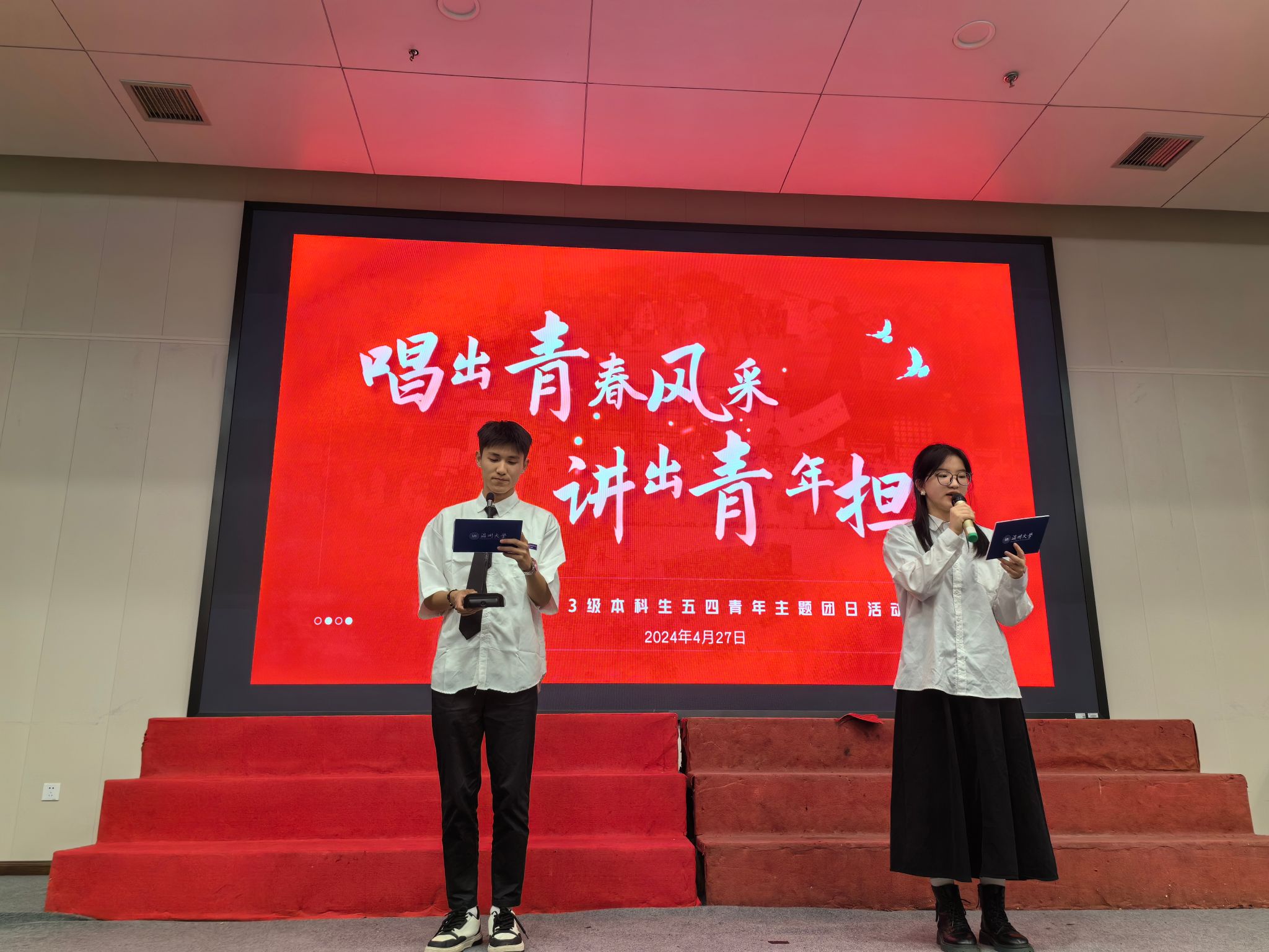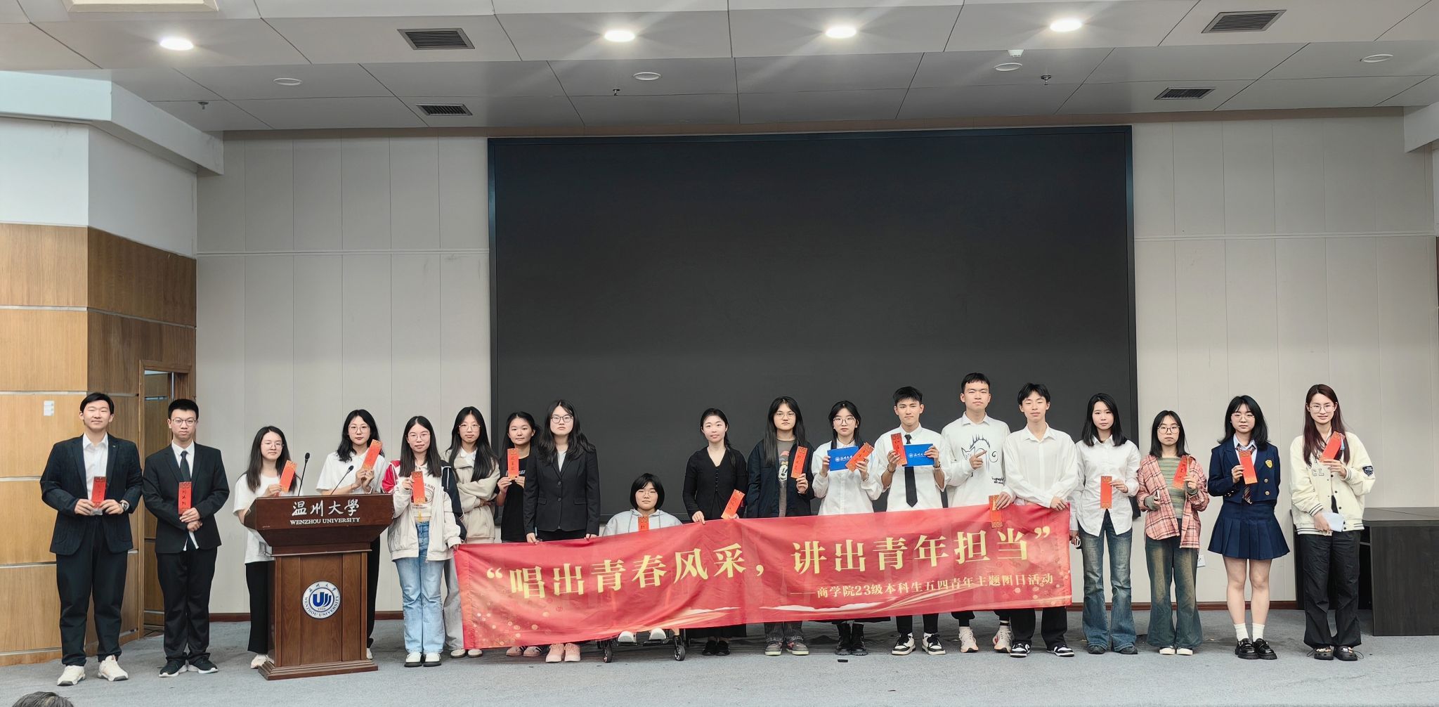 当“唱”与“讲”擦出火花,将青春的光芒绽放在温大的夜晚,活动在火热的氛围之中缓缓落幕。青年兴则国家兴,青年强则国家强,愿广大商院学子们在今后也能保持奋斗的姿态,胸怀凌云之志,强自身,报祖国,在青春的赛道上跑出当代青年的最好成绩。