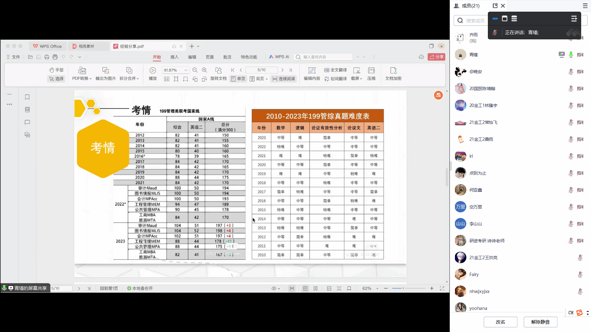 联合研途考研于近日在腾讯会议上成功举办了“2024届考研经验线上分享会”。在这场别开生面的线上交流中,六位成功上岸的学姐学长们结合自身考研经历热情耐心地回答了学弟学妹们的各种问题,现场气氛十分热烈。