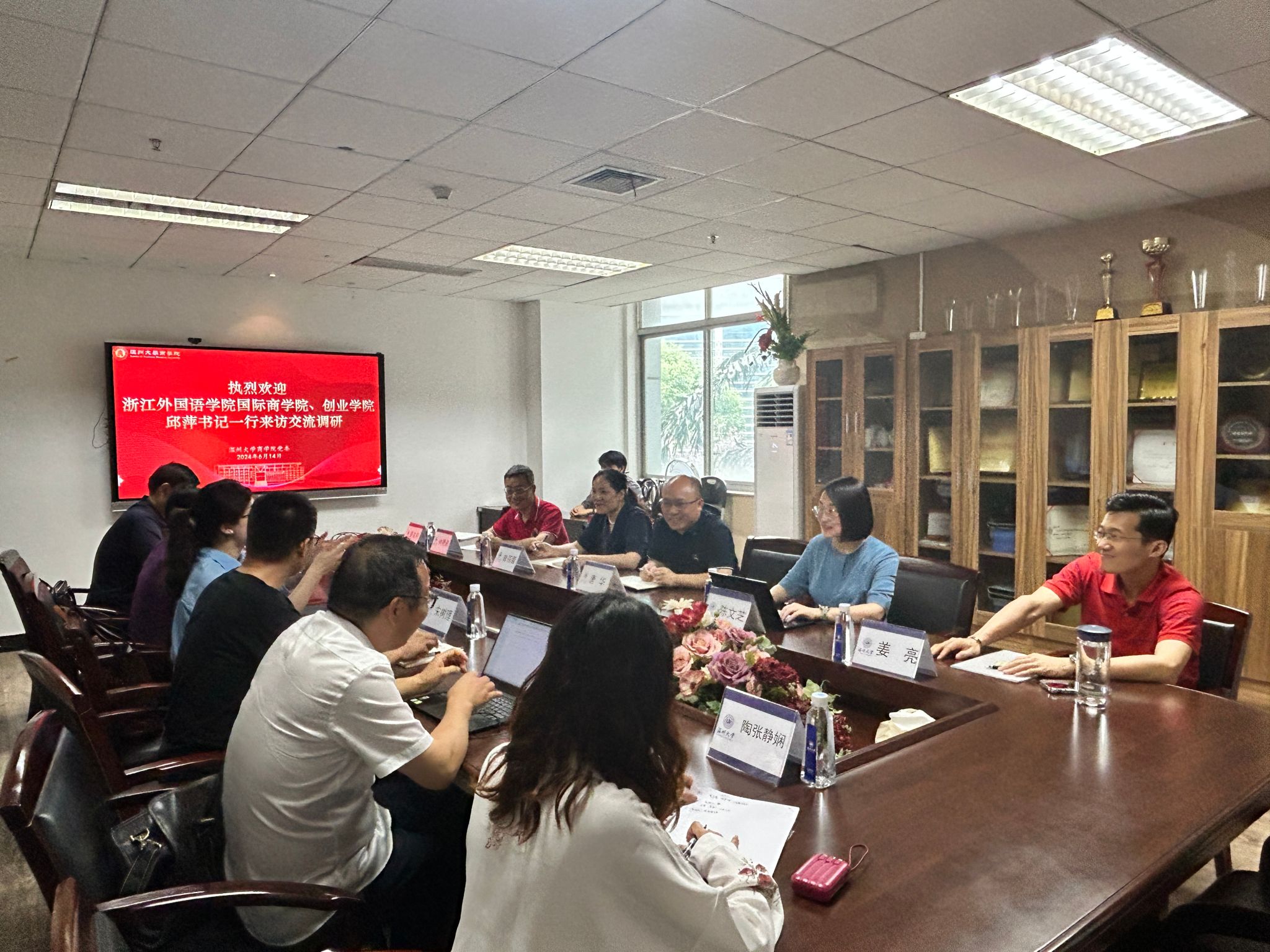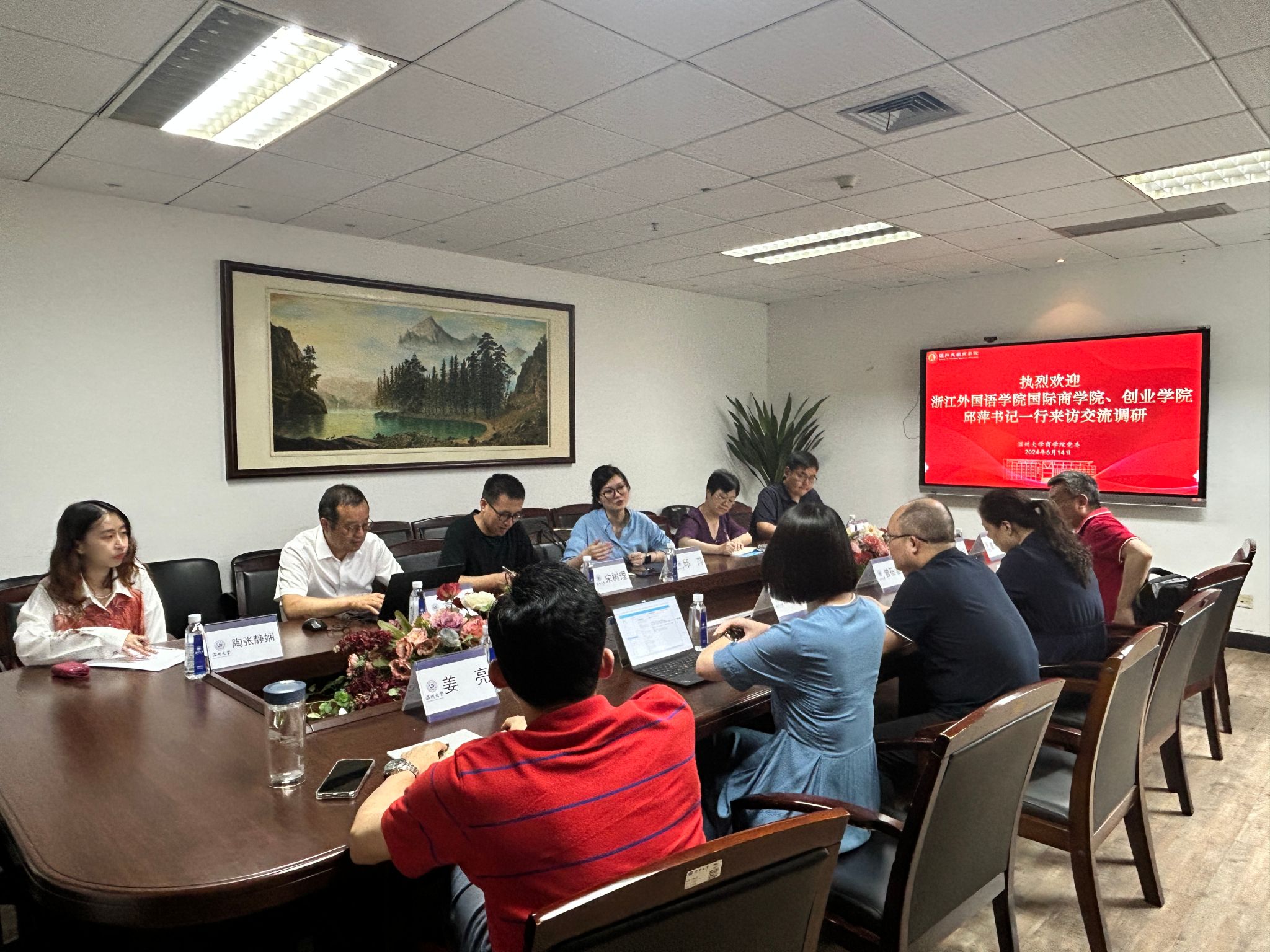 调研交流。学院党委书记唐华、副院长陈文芝、党委副书记曾蓓蕾、国贸系主任姜亮、金融系主任林德根出席了会议。