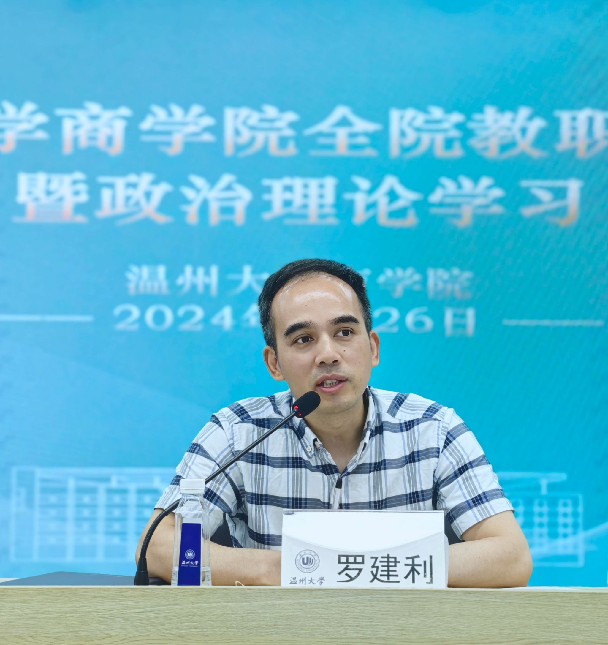 罗建利院长总结讲话。他从学校层面深刻剖析了当前学院发展所面临的挑战和机遇。罗院长强调,学院处在学校建设高水平研究教学型大学的新阶段,学院新班子要与全体教师一道,凝聚共识、齐心协力,以改革化危机,以改革赋新能,共同推动学院高质量发展。