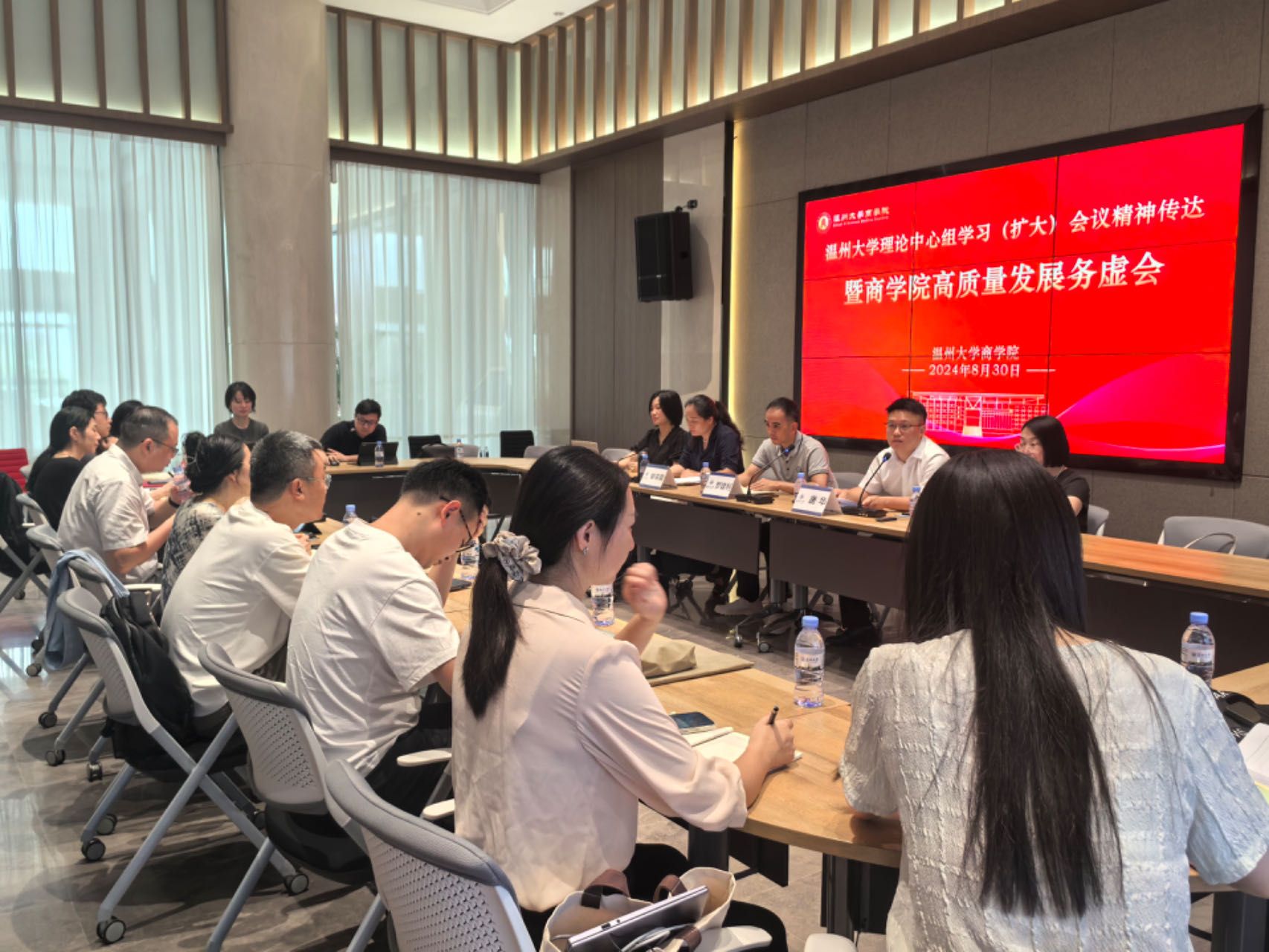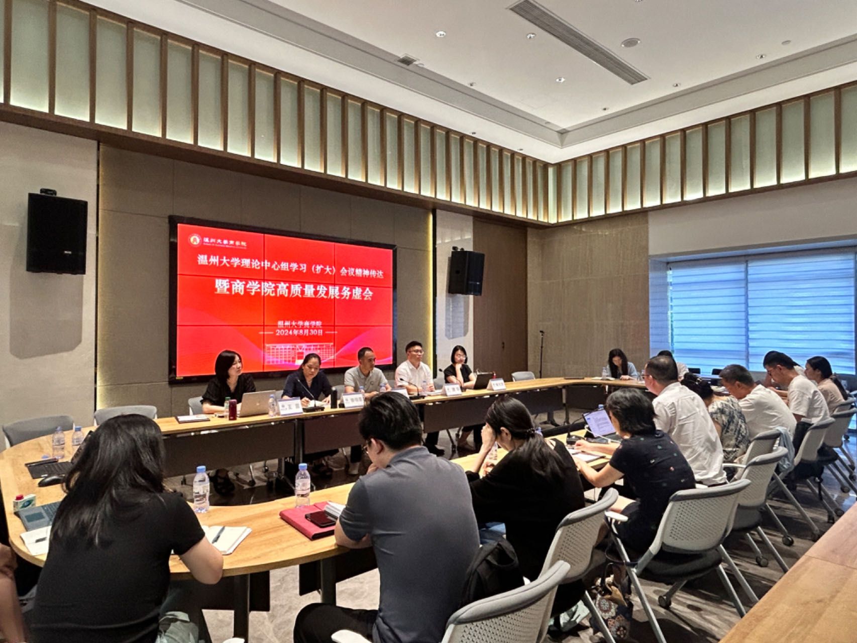 随后,王露副院长、陈文芝副院长、曾蓓蕾副书记结合分管工作作学院发展改革思路与举措专题汇报。王露副院长从专业设置、课程质量、教学资源、考研升学、国际化五个方面对其分管工作进行现状陈述与原因分析,并提出稳步开展专业优化、推动课程质量提升、实施教学资源建设、推进考研升学提升、探索国际化战略五大举措。陈文芝副院长分别从学科、科研、服务地方、实验室建设等四个角度切入分析学院学科科研工作的现状、问题与举措,强调要强化学科特色,前瞻布局学位点;紧跟学科发展方向,凝练研究方向,依托科研平台,开展有组织科研,提升标志性成果产出;加强顶层设计,充分整合院内外资源,提升服务地方能力;依托现有基础,兼顾教学科研,加强文科实验室建设。曾蓓蕾副书记就学生工作作《五育并举促成长 三全育人显成效——关于商科人才培养质量提升的思考》专题报告,重点剖析了学院就业、考研、出国出境升学等情况,并提出了系列有成效、有抓手、操作性较强的举措。党委理论学习中心组成员就专题报告从专业设置、教学质量提升、有组织科研等方面进行了交流发言。