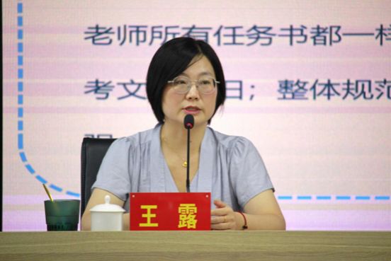 接着,王露副院长、陈文芝副院长、曾蓓蕾副书记结合分管工作作新学期学院发展改革思路与举措专题汇报。王露副院长从专业优化、成果建设、课程质量、考研升学与国际化五个方面展开现状分析与汇报。