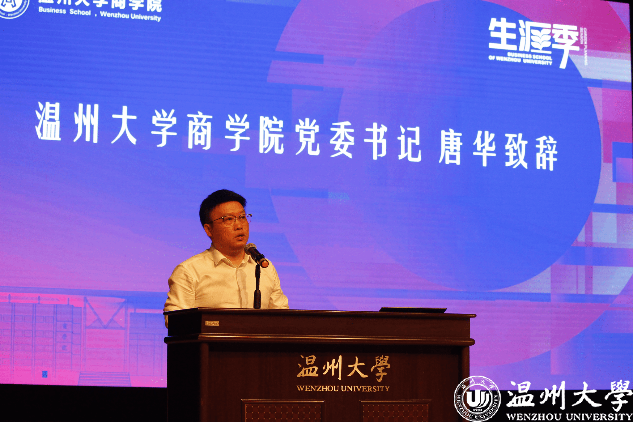 “生涯季”活动是一个展示才华、交流思想的平台,更是一个引导大学生思考未来、规划职业生涯的重要契机,在当前社会快速发展、就业形势日益严峻的背景下,明确职业目标、提升职业素养、增强就业竞争力显得尤为重要。在此,他提出三个期望,一是期望同学们能够饱满的热情投入此次活动,提升自我,为未来的职业生涯打下坚实的基础;二是期望同学们走出校园、融入社会,在实践中形成对未来职场和未来职业的真实认知;三是期望同学们以本次活动为生涯规划的起点,锚定“立大志、明大德、成大才、担大任”的人生职业目标,将小我融入大我,勇敢肩负起时代赋予的重任。