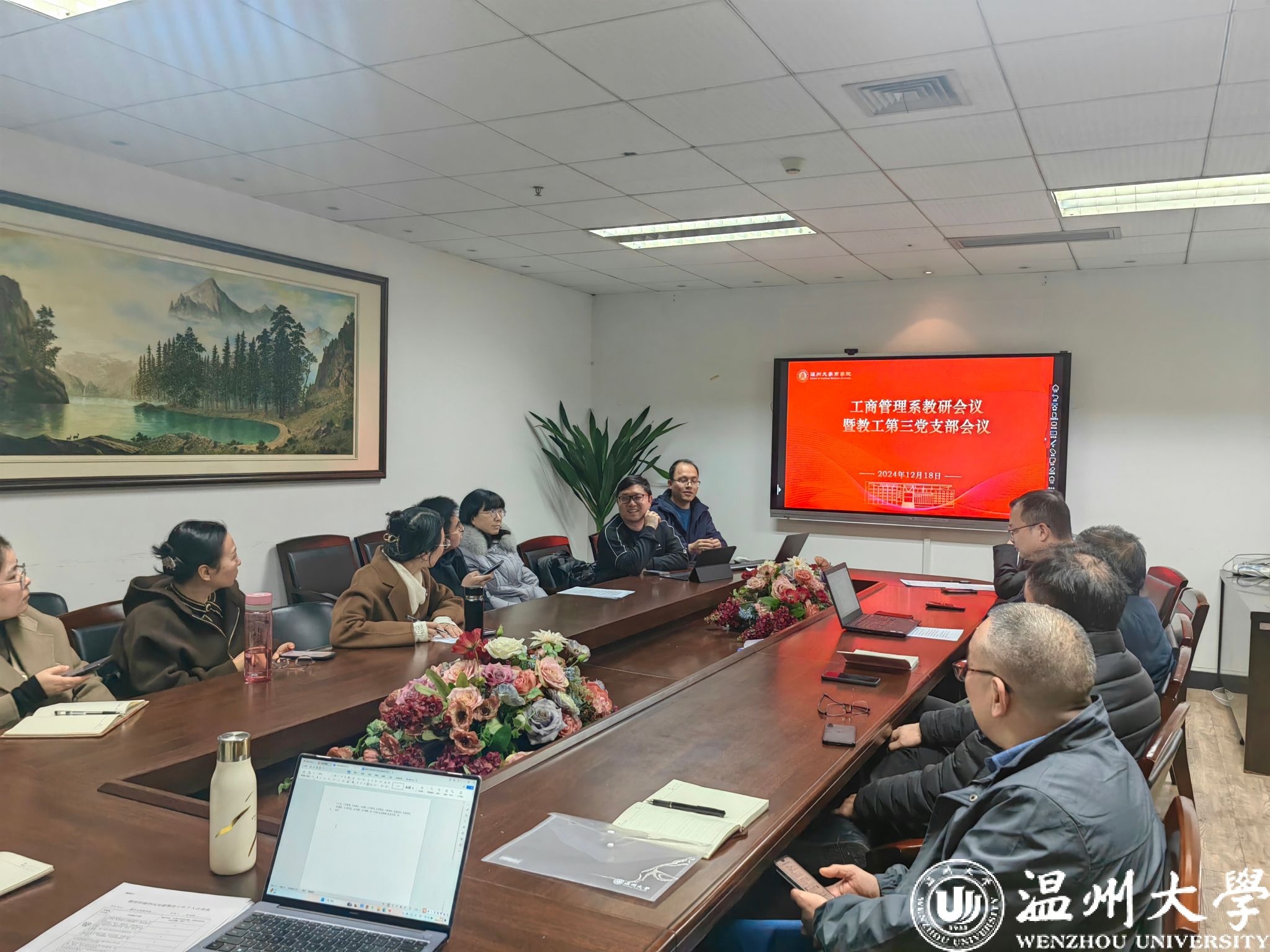 工商管理系召开教研会议暨教工第三党支部会议。此次会议旨在深入贯彻落实学校教育教学工作部署,凝聚全系教师力量,全力推进 2025 年本科教育教学审核评估任务,同时对薪酬津贴分配方案、科研奖励等文件进行讨论并收集反馈意见。此外,会议还通过了优秀教师、优秀党员推荐,落实师德师风建设等重要事项。会议由系主任方嘉奇主持,系内全体教师、教工第三党支部党员参加。