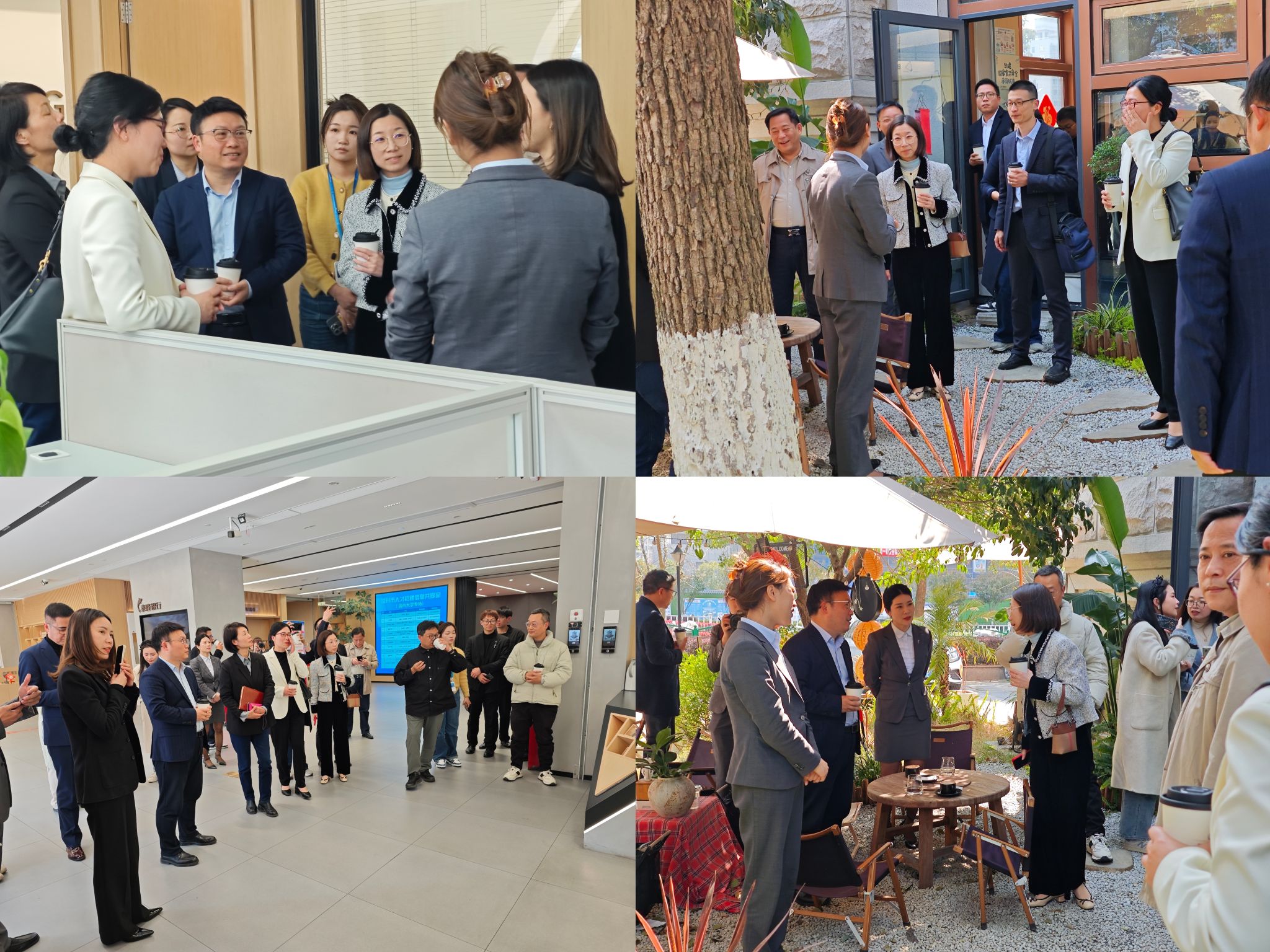 在蒋丽英副行长的陪同下,与会人员还实地参观了泰隆银行温州分行的办公区域和特色服务空间,了解银行的发展历程和经营特色,并体验了青春驿站、人才咖啡、非遗体项目、共享会议室、共享茶室等创新服务项目。